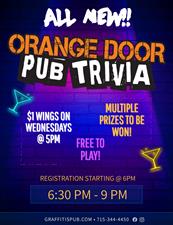 ALL NEW! Orange Door interactive trivia on the big screen! Use your phone in teams of 2 or more for the chance to win different prizes!